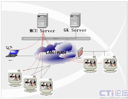 當(dāng)召開多點(diǎn)的交互式會(huì)議時(shí)則需要MCU(多點(diǎn)控制器)的參與。MCU的作用類似于交換機(jī),主要完成各會(huì)場圖像的切換和語音的混音功能,一般放置在主會(huì)場。在MCU的控制下可以實(shí)現(xiàn)語音激勵(lì)、導(dǎo)演控制等多種會(huì)議控制方式。
