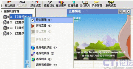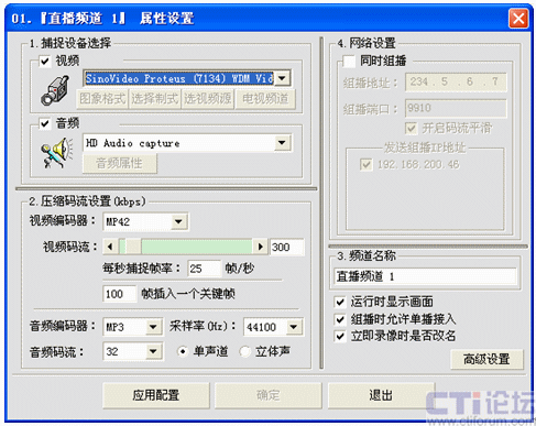 用鼠標(biāo)右鍵點擊直播頻道管理下的某個頻道號,我這里選擇01:在彈出的右鍵菜單中選擇“直播頻道設(shè)置”或者點擊工具欄里的“頻道設(shè)置”圖標(biāo),出現(xiàn)下面的設(shè)置圖: