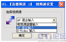 其中支持三種視頻源:從電視調(diào)諧器輸入是對應(yīng)電視光纖信號輸入,av混合輸入則對應(yīng)從電視卡的av端子輸入,s-video輸入對應(yīng)從S-video端子輸入。由于遠教接收機只能輸出av信號,我這里是連接電視卡的av端子接收遠教電視節(jié)目的。因此這里選擇“AV混合輸入”,確定即可。
