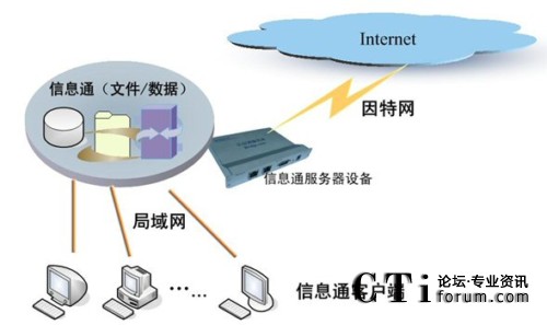 信息通系統(tǒng)的軟硬件部署,主要包括三個(gè)部分:信息通用戶工作平臺(tái)(客戶端)、信息通服務(wù)器(嵌入式設(shè)備)、數(shù)據(jù)/文件/管理服務(wù)器(其它應(yīng)用)。其中,在實(shí)際應(yīng)用中,信息通服務(wù)器與數(shù)據(jù)/文件服務(wù)器可以根據(jù)實(shí)際情況整合為一臺(tái)服務(wù)器。另外,整個(gè)系統(tǒng)通過(guò)應(yīng)用網(wǎng)關(guān)——信息通服務(wù)器設(shè)備——與Internet連接,所以,信息通服務(wù)器與應(yīng)用服務(wù)器為同一臺(tái)服務(wù)器。