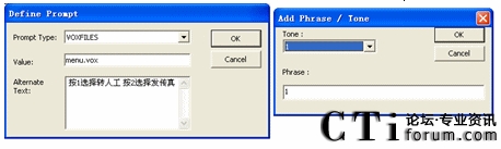 圖5.6 菜單節(jié)點(diǎn)放音文件和按鍵配置對(duì)話框圖