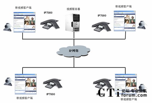 用戶現(xiàn)階段采用V2軟件視頻會(huì)議系統(tǒng),但現(xiàn)有的設(shè)備無(wú)法解決大型會(huì)議室的聲音處理問(wèn)題。故新增PolycomSoundStation IP 7000音頻會(huì)議終端,并通過(guò)Polycom專(zhuān)有的計(jì)算機(jī)呼叫工具包使其與PC機(jī)相連,解決V2的軟件視頻會(huì)議系統(tǒng)大型會(huì)議室的聲音處理問(wèn)題。