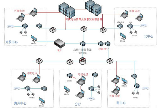 全行所有可視電話均通過數(shù)據(jù)中心(北京)新部署的可視電話管理及信息發(fā)布服務(wù)器進(jìn)行配置、管理及信息展現(xiàn)。