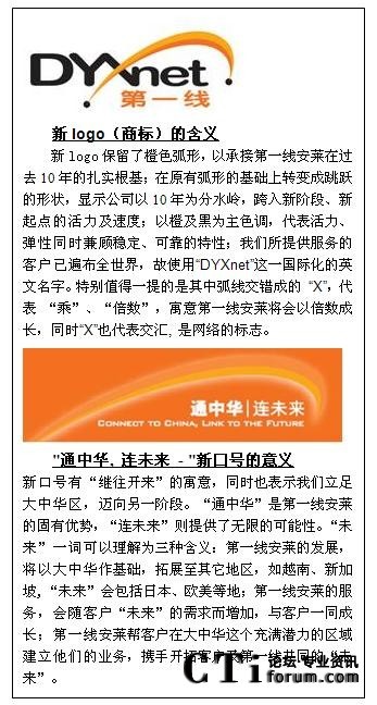 CTI論壇(ctiforum)08月20日消息: 知名網(wǎng)絡(luò)服務商第一線安萊,十年間憑借經(jīng)驗豐富的團隊,靈活的服務、可靠的網(wǎng)絡(luò)系統(tǒng)等,遙遙領(lǐng)先于眾多競爭對手,傲然屹立于大中華地區(qū)。目前,正值第一線安萊十周年慶之際,全新的企業(yè)商標和“通中華.連未來”的新口號也向大眾展示。公司提出將幫助客戶實現(xiàn)“立足大中華,拓展全世界”的愿景。