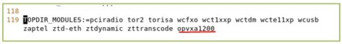 找到 TOPDIR_MODULES= 開(kāi)頭的這一行,添加opvxa1200 ,保存退出