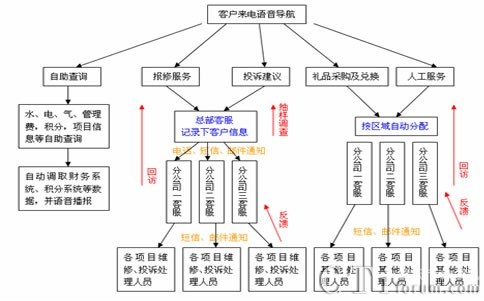 自動判斷用戶來電,識別客戶身份,屬哪個服務中心(管理處),能自動接入對應地區(qū)的客服座席,座席人工可直接對來電進行分類處理,報修類彈出派工單,投訴類彈出投訴處理記錄,客戶采購彈出采購單,然后由座席人員將相關記錄錄入系統(tǒng)內,其中報修和投訴內容一經錄入,無權限人員不能隨意更改,確認后通過郵件、手機短信分派給責任人處理,同時顯示事件處理狀態(tài)。每個事件過程有時效限制,客戶投訴和報修服務需要設置服務超時時間,系統(tǒng)視超時時間長短自動發(fā)送手機短信或(和)郵件通報給相關領導。超時與報送領導間的對應關系由管理員設置指定。