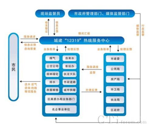 - 各城管系統(tǒng)都設(shè)立專門機構(gòu)直接與熱線中心聯(lián)系,即時處理服務(wù)中心轉(zhuǎn)來的各類問題,實現(xiàn)“市民→熱線中心→責(zé)任單位→市民”的閉路循環(huán),做到受理及時、反應(yīng)快速、處理到位, 使 12319 熱線成為密切政府與群眾關(guān)系、 創(chuàng)建行業(yè)服務(wù)品牌的一項重要舉措。