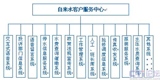 服務(wù)中心對外面向用戶服務(wù),對內(nèi)與整個自來水公司相聯(lián)系,將管理、監(jiān)控、考核、服務(wù)結(jié)為一體,它還可以把從用戶那里所獲得的各種信息、數(shù)據(jù)全部儲存在龐大的數(shù)據(jù)庫中,并能形成各類分析報表,供領(lǐng)導做分析和決策之用。