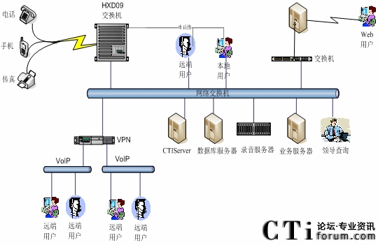 如前所述,本系統(tǒng)提供基于hxd09可編程智能語音交換機的語音接入方式,支持1號和7號信令線路的接入。對于企業(yè)客戶服務中心系統(tǒng),選用行價比極高的hxd09交換機作為語音接入設備,保障系統(tǒng)的高可靠性和穩(wěn)定性;同時具有良好的系統(tǒng)性能;以確保合理的、較少的投入,獲取最佳的配置,滿足不同企業(yè)的需求。