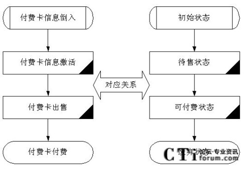 預(yù)付費(fèi)業(yè)務(wù)向用戶提供實(shí)時業(yè)務(wù)消費(fèi)和卡充值服務(wù)。當(dāng)持卡用戶欲通過充值卡使用某種業(yè)務(wù)時,首先必須對其卡進(jìn)行“身份驗(yàn)證”(核對卡號及密碼),并確認(rèn)其卡中的剩余金額是否足夠支付該種業(yè)務(wù)。若驗(yàn)證、確認(rèn)通過后,才允許用戶使用該種業(yè)務(wù),根據(jù)用戶卡上的余額和該種業(yè)務(wù)的資費(fèi)政策計算出用戶使用該業(yè)務(wù)的最大時長,并在其使用的過程中根據(jù)該種業(yè)務(wù)的資費(fèi)政策進(jìn)行計費(fèi),對其卡中的金額進(jìn)行實(shí)時核減。若用戶使用該業(yè)務(wù)的時間達(dá)到最大時長限制,則系統(tǒng)向用戶發(fā)出超時報警,提示用戶中斷使用或者使用另外一張卡。