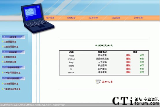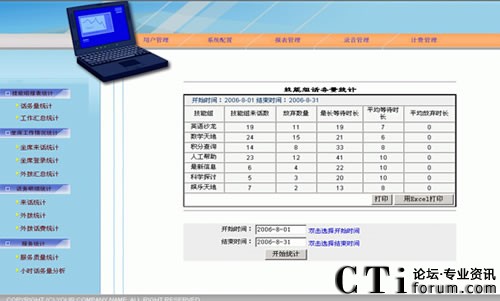 CTI控制是整個呼叫中心呼叫控制的樞紐。所有類型的呼叫控制都由CTI控制服務器進行控制,CTI服務器將各種類型的呼叫進行統(tǒng)一的控制,以便進行統(tǒng)一ACD排隊、管理、統(tǒng)計和監(jiān)控。