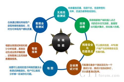 AirWisdom_Wlan無(wú)線測(cè)試分析系統(tǒng)針對(duì)終端用戶(hù)的實(shí)際體驗(yàn),基于不同業(yè)務(wù)的測(cè)試特點(diǎn)提供了詳細(xì)的分析和統(tǒng)計(jì)功能,下面簡(jiǎn)單介紹主要功能: