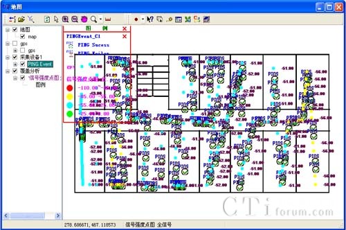 地圖可以顯示信道、指定的AP、指定網(wǎng)絡(luò)的信號(hào)強(qiáng)度、噪聲、干擾強(qiáng)度、丟包率等點(diǎn)圖,并通過(guò)圖例和不同顏色顯示在地圖上,用戶(hù)通過(guò)點(diǎn)圖可以很直觀的發(fā)現(xiàn)某個(gè)區(qū)域存在弱覆蓋、丟包率過(guò)高、同頻干擾、鄰頻干擾等網(wǎng)絡(luò)問(wèn)題。