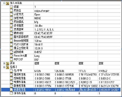 主要測(cè)試指標(biāo)有:信號(hào)強(qiáng)度,噪聲,信噪比,載干比,支持速率,MAC地址,認(rèn)證及加密方式,Beacon幀間隔,Preamble長(zhǎng)度類(lèi)型,PCF/DCF,SSID,占用信道等。
