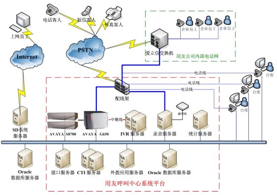HollyContact(CTI中間件)等,搭建了一個(gè)為用友用戶進(jìn)行軟件應(yīng)用技術(shù)咨詢、軟件產(chǎn)品咨詢、軟件購(gòu)買咨詢、故障受理、服務(wù)投訴、滿意度調(diào)查、客戶關(guān)懷等內(nèi)容的支撐系統(tǒng)。