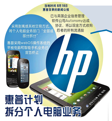 在上周五的財(cái)報(bào)會(huì)議上,惠普突然宣布三個(gè)重要決定:剝離PC業(yè)務(wù)、關(guān)閉WebOS的硬件業(yè)務(wù)、102億美元并購(gòu)英國(guó)第二大軟件廠商Autonomy公司。這意味著,惠普未來(lái)將專注于軟件領(lǐng)域。