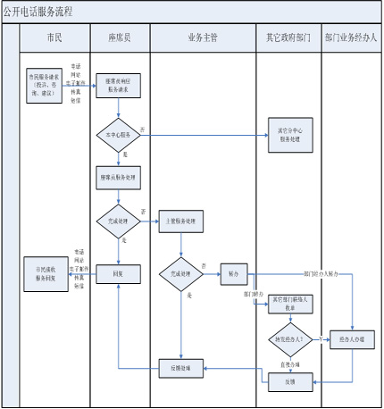 后臺處理座席員根據(jù)業(yè)務知識、資料庫和管理職責為市民服務,如果不能處理,將請求提交相關政府部門并限時處理;