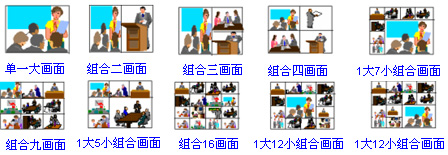 華為高清視訊系統(tǒng)采用了數(shù)字多畫面合成技術(shù),系統(tǒng)全面提供2、3、4、6、8、9、13、16等不同的9種畫面組合模式,在會議過程中,多畫面的格式可以通過主席或管理員隨意切換,同時(shí)會議過程中也可以在單多畫面之間的自由切換。支持的多畫面組合模式如下: