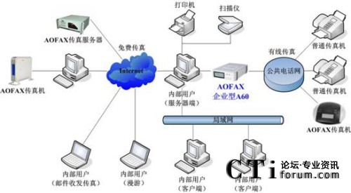 A60網(wǎng)絡(luò)傳真機(jī)的應(yīng)用示意圖如下所示: