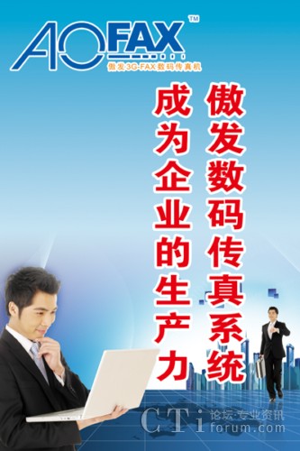 CTI論壇(ctiforum)4月24日消息(記者 歐陽): 經(jīng)濟(jì)發(fā)展外圍形式嚴(yán)峻,經(jīng)濟(jì)增速放緩,人工、生產(chǎn)成本高位運(yùn)行,部分企業(yè)效益大幅降低。那么,中小企業(yè)如何提高自身的競爭力呢?作為企業(yè)辦公通信必不可少的設(shè)備,電子傳真機(jī)、數(shù)碼傳真機(jī)、無紙傳真機(jī)、網(wǎng)絡(luò)傳真機(jī)、電腦傳真機(jī)、傳真卡、傳真群發(fā)器、傳真服務(wù)器等新型電腦傳真系統(tǒng)的迅速熱銷,也能助企業(yè)一臂之力,由金恒科技(深圳)有限公司推出的傲發(fā)3G-FAX(AOFAX)系列電子傳真和傳真服務(wù)器產(chǎn)品是其中的佼佼者,占據(jù)著新型傳真市場的大半江山,受到廣大消費(fèi)者的一致好評(píng)。