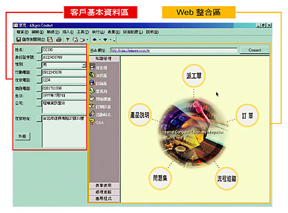 AltiGen可整合Web機(jī)制,Web為全世界Internet的標(biāo)準(zhǔn)介面,更是整合全球資源達(dá)無(wú)遠(yuǎn)弗屆境界的功臣,同時(shí)企業(yè)主可在其上輕易開(kāi)發(fā)或整合其他程式,更可整合Web跑單 (Work Flow)、訂單等功能,使用者可一邊與客戶通話,一邊在電腦螢?zāi)簧舷掠唵位蚍峙晒ぷ鳎?jié)省人工跑單作業(yè)時(shí)間,提升作業(yè)效率,同時(shí)對(duì)于跑單狀況的追蹤管理皆可在統(tǒng)一介面獲得整合,任何更新的進(jìn)度都可第一時(shí)間掌握。