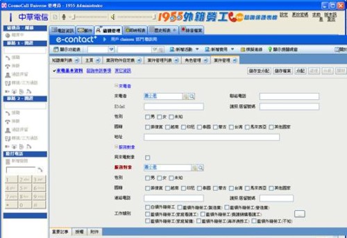 相信不久的將來(lái),e-Contact+ 一定會(huì)成為各企業(yè)競(jìng)相爭(zhēng)購(gòu)的明星產(chǎn)品!截至目前,確認(rèn)導(dǎo)入此套產(chǎn)品的公司包含臺(tái)北縣政府的個(gè)案輔導(dǎo)管理、中華電信的客服活動(dòng)關(guān)懷軟體、1955外籍勞工24小時(shí)咨詢(xún)保護(hù)專(zhuān)線,這三家公司透過(guò)業(yè)務(wù)自行定義物件中的調(diào)整客制化欄位,使用基礎(chǔ)模組的客戶(hù)管理,再配合其他相關(guān)模組物件導(dǎo)入,讓工作流程與資料再單一畫(huà)面下容易被管理。