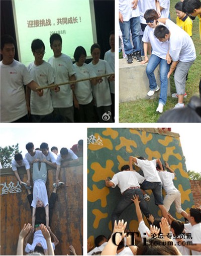 CTI論壇(ctiforum)10月12日消息(記者 張潔):為了進(jìn)一步推動企業(yè)和員工的共同發(fā)展,增強(qiáng)團(tuán)隊的協(xié)作能力和責(zé)任意識,易才博普奧于2011年8月18日至8月19日于房山青龍湖人眾人拓展訓(xùn)練基地組織開展了主題為“破冰之旅”的戶外團(tuán)隊拓展活動。這次活動集結(jié)了來自易才博普奧呼叫中心事業(yè)部、公共服務(wù)部、整合行銷事業(yè)部、項目部等七個部門的120多名員工。在短短的兩天培訓(xùn)時間里,各部門領(lǐng)導(dǎo)員工融入到一起參與到各項活動中,受益匪淺,感慨良多。