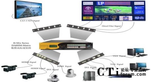 Kensence H-Mix系列產(chǎn)品專門為解決在視頻工程中遇到的諸多問題而設(shè)計(jì),將數(shù)字視頻信號、模擬視頻信號、高清視頻信號和標(biāo)清視頻信號混為一體處理成高清720p@60Hz或1080p@60Hz信號的HDMI的高清數(shù)字信號通過網(wǎng)絡(luò)傳輸?shù)囊豢疃嗝襟w混合矩陣。Kensence H-Mix采用Silicon Image HDMI v1.3芯片,支持HDMI\DVI\3GSDI\HDSDI\SDI\VGA\YPbPr\CVBS信號的輸入和HDMI\DVI\CAT-5\光纖信號的輸出,可將VESA\CEA\HDTV各種不同分辨率的信號轉(zhuǎn)換為HDTV的高清視頻分辨率,并且可以通過普通五類雙絞線或多模光線進(jìn)行高清視頻的傳輸。Kensence H-Mix可以通過網(wǎng)絡(luò)、RS232、IR、軟件、前面板對系統(tǒng)進(jìn)行控制管理,采用插卡式設(shè)計(jì)可以任意進(jìn)行系統(tǒng)組合,方便靈活。模塊化雙電源冗余熱備份功能可以實(shí)現(xiàn)7日24小時連續(xù)開機(jī),保證系統(tǒng)安全可靠工作。