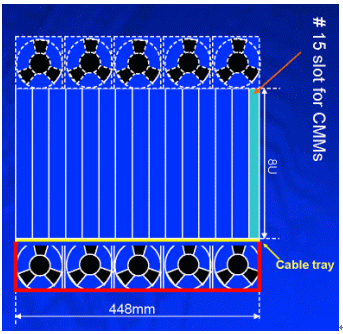 另外在機架內(nèi)的放置空間上,42U的標(biāo)準(zhǔn)機架里可以放3臺12~14U機箱,若將機箱降至10U則可以放置4臺,這樣可以增加整體空間的利用率,所以有了10U機箱的設(shè)計需求。在各種不同高度的機箱設(shè)計中,風(fēng)扇散熱系統(tǒng)的放置位置、方式與總散熱效能能夠達(dá)到200*14=2800W,將會是ATCA機箱設(shè)計所要考慮的最重要因素之一,尤其是在10U的機箱設(shè)計上。