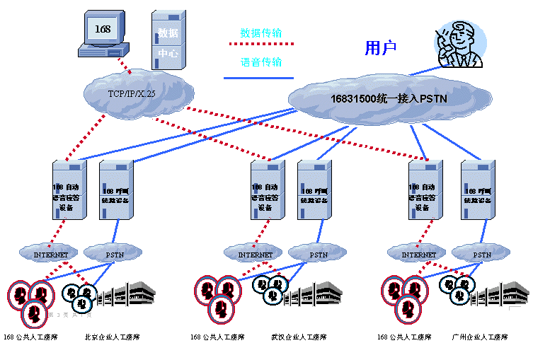 “中國(guó)電信168315企業(yè)客戶(hù)服務(wù)中心”利用分布在全國(guó)各地的168聲訊臺(tái),為企業(yè)提供全國(guó)統(tǒng)一特服接入號(hào)碼以及統(tǒng)一的自動(dòng)語(yǔ)音服務(wù)功能,包括信息發(fā)布、信息查詢(xún)、信息登記、語(yǔ)音留言、自動(dòng)傳真等服務(wù)功能,消費(fèi)者在開(kāi)通地區(qū)只需付市話(huà)費(fèi)就可以獲得企業(yè)的此項(xiàng)服務(wù)。針對(duì)消費(fèi)者在使用16831500-****電話(huà)中的語(yǔ)音自動(dòng)應(yīng)答功能時(shí),會(huì)遇到一些系統(tǒng)設(shè)計(jì)好的答案無(wú)法解決的模糊問(wèn)題,消費(fèi)者只要按“0”號(hào)鍵,電話(huà)就被轉(zhuǎn)到企業(yè)在當(dāng)?shù)胤⻊?wù)人員的座席上,由專(zhuān)業(yè)人員來(lái)提供服務(wù)支持。也可以將消費(fèi)者的呼叫請(qǐng)求轉(zhuǎn)移到全國(guó)各地168臺(tái)的公共人工座席上,統(tǒng)一由168臺(tái)的外包服務(wù)座席提供服務(wù)。該系統(tǒng)為16831500智能電話(huà)網(wǎng)的自動(dòng)語(yǔ)音應(yīng)答服務(wù)功能提供充分的人工服務(wù)支持。