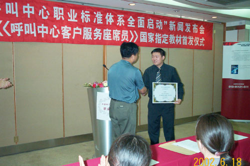 "呼叫中心職業(yè)標準體系全面啟動"新聞發(fā)布會,暨《呼叫中心客戶服務座席員》國家指定教材首發(fā)儀式于2002年6月18日在北京舉行。呼叫中心行業(yè)全面引入國家標準管理體系,全國范圍內客戶服務代表將陸續(xù)持證上崗。