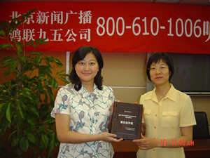鑒于鴻聯九五信息處理中信與北京廣播電臺新聞臺的合作中所提供的高水平的服務,近期,新聞臺李臺長在聽眾見面會上親自將最佳合作獎交到鴻聯九五總經理趙薇的手中,并熱切希望開拓今后合作,努力走出一條呼叫中心和媒體合作的新路。
