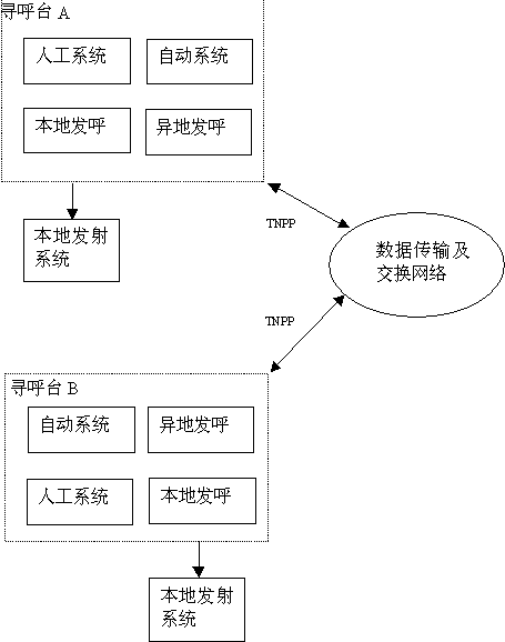 網(wǎng)絡(luò)系統(tǒng)由本地尋呼系統(tǒng),數(shù)據(jù)網(wǎng)絡(luò)傳輸和交換系統(tǒng)組成。