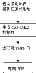 異地呼叫漫游到本地的異地機(jī)時(shí),異地發(fā)出的CAP CALL會送入本地發(fā)呼工作站,發(fā)呼工作站僅修改其目的地址,把它轉(zhuǎn)發(fā)給本地CNET由CNET送到編碼器編碼后送到發(fā)射機(jī)發(fā)射,完成呼叫過程。詳見流程5。