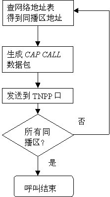 本地呼叫登記了同播功能的本地機(jī)時(shí), 自動臺通過PCM數(shù)字中繼, 從MFC信號中取到BP機(jī)號及主叫電話號碼, 或從用戶DTMF撥號中得到信息碼,形成發(fā)呼串送到發(fā)呼工作站,由發(fā)呼工作站根據(jù)同播區(qū)號,往所有的自動臺發(fā)CAP CALL,后面的呼叫過程就由同播地自動臺來完成。同播區(qū)可以為包括本地區(qū)的多個(gè)區(qū)。下圖中TNPP口可以為本地TNPP端口或聯(lián)網(wǎng)TNPP端口。