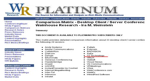 日前,在美國(guó)多媒體視頻和通訊領(lǐng)域權(quán)威市場(chǎng)調(diào)研機(jī)構(gòu)的 Wainhouse Research 最新發(fā)布了的全球軟件視頻會(huì)議廠(chǎng)商的研究報(bào)告,北京威速(V2)科技有限公司作為中國(guó)領(lǐng)先的軟件視頻會(huì)議與解決方案提供商,憑借在軟件視頻會(huì)議領(lǐng)域里始終如一的卓越表現(xiàn),以中國(guó)唯一廠(chǎng)商的身份入主“全球軟件視頻會(huì)議TOP30”榜單。