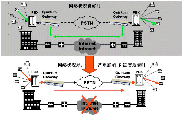 。。Quintum TASQTM專利技術(shù)可動態(tài)監(jiān)控網(wǎng)絡(luò)流量狀況,在任何時刻當網(wǎng)絡(luò)頻寬低于企業(yè)預(yù)設(shè)門限值,以致于無法負荷企業(yè)所要求的語音品質(zhì)時,語音回路將自動切換到傳統(tǒng)