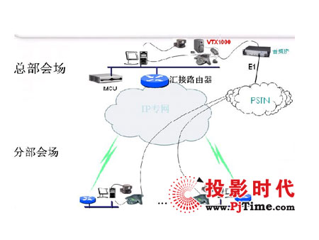 以上拓?fù)鋱D為某單位建立的一套視頻會(huì)議系統(tǒng),會(huì)場(chǎng)地理?xiàng)l件比較惡劣,計(jì)劃組建一套交互式電話會(huì)議系統(tǒng)進(jìn)行擴(kuò)展,并且音頻及視頻會(huì)議可以充份融合的方案。主會(huì)場(chǎng)配備一套POLYCOM