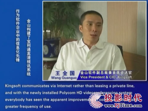 金山軟件副總裁兼首席資訊官王全國先生說道:“對于軟件行業(yè)來說,及時、高效的溝通是保持競爭優(yōu)勢的重要前提。相比之前使用的標清產(chǎn)品,寶利通高清視頻會議系統(tǒng),提供了完全不同的體驗,流暢的高清晰畫面猶如真實的面對面溝通。而且我們公司并沒有申請專線,所有的應(yīng)用都是基于公網(wǎng)實現(xiàn)的。另一方面,新型全中文定制菜單的運用,令我們使用起來非常方便,這更提高了我們使用視頻通信手段實現(xiàn)異地溝通的熱情!