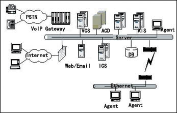 系統(tǒng)內(nèi)部所有媒體呼叫均采用IP數(shù)據(jù)包的格式由核心ACD Server統(tǒng)一處理,完成呼叫控制、路由處理、與呼叫同步的用戶數(shù)據(jù)管理及信息監(jiān)視。對(duì)于整個(gè)系統(tǒng)而言,雖然媒體接入方式各不相同,但路由策略卻可以完全一致。客戶可隨時(shí)隨地通過(guò)各種媒體與企業(yè)進(jìn)行緊密聯(lián)系。通過(guò)核心控制系統(tǒng),采用一致的路由方式,可以追蹤及管理所有媒體以及一切客服系統(tǒng)人力資源。
