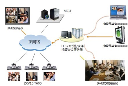 在現(xiàn)有視頻會議網(wǎng)絡(luò)基礎(chǔ)上新增軟件視頻會議系統(tǒng)設(shè)備,主要負責軟終端接入MCU、多點軟終端會議。