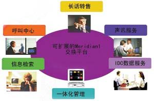 由于IP電話及計(jì)費(fèi)系統(tǒng)是搭建在通廣北電的Meridian 1交換平臺(tái)上,因此很容易實(shí)現(xiàn)其他業(yè)務(wù)的并存和提升。在項(xiàng)目實(shí)施中還可以加入呼叫中心的功能。它的構(gòu)建不僅能滿足現(xiàn)今IP電話的服務(wù)功能,還能為今后運(yùn)營商的其他業(yè)務(wù)提供服務(wù)。