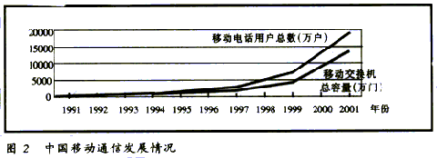 (1)移動(dòng)通信主要以繼續(xù)快速發(fā)展移動(dòng)電話用戶為主,年增4500~5000萬(wàn)戶;同時(shí)移動(dòng)數(shù)據(jù)業(yè)務(wù)(如GPRS、WAP等)會(huì)有一定程度發(fā)展。