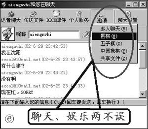 5、夢(mèng)幻尋呼(DICO):郵件群發(fā)功能;豐富的插件使得我們可以聊天娛樂兩不誤(如圖6);方便清晰的語音聊天功能——能夠穿透防火墻,達(dá)到電話的音質(zhì)效果;個(gè)人Web服務(wù)——可以把你的個(gè)人電腦輕松設(shè)置成一個(gè)Internet
