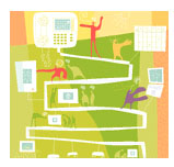 俗話說(shuō),多多益善。但是當(dāng)談到多個(gè)網(wǎng)絡(luò)的管理或費(fèi)用承擔(dān)等問(wèn)題時(shí),恐怕大多數(shù)人都會(huì)同意一個(gè)網(wǎng)絡(luò)要比兩個(gè)或者三個(gè)更為經(jīng)濟(jì)有效。這其實(shí)是很容易理解的----當(dāng)數(shù)據(jù),語(yǔ)音和視頻能夠利用同一個(gè)網(wǎng)絡(luò)進(jìn)行傳輸?shù)脑,還有什么必要在每個(gè)桌子拖上一大堆電線,讓公司維護(hù)三五套網(wǎng)絡(luò)硬件,還要養(yǎng)活好幾組技術(shù)支持隊(duì)伍呢?更何況一個(gè)綜合性的網(wǎng)絡(luò)還能集中精力為每個(gè)用戶提供更好的服務(wù)?于是,IP電話應(yīng)運(yùn)而生,這種技術(shù)讓很多公司有機(jī)會(huì)利用現(xiàn)有的網(wǎng)絡(luò)框架贏得更大的利益。