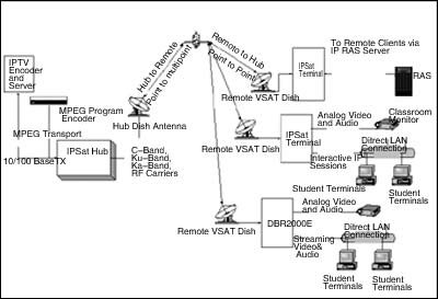 中國衛(wèi)通的“衛(wèi)星寬帶視頻會議系統(tǒng)”是一個(gè)典型的IPSat系統(tǒng),由一個(gè)發(fā)送高速上行廣播的主站和使用IPSat終端的多個(gè)遠(yuǎn)端站構(gòu)成。