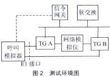 IP中繼媒體網關測試主要內容包括:基本功能測試、接口測試、協(xié)議測試、通信流程測試、網管功能測試。性能測試、可靠性測試和網同步測試等。測試環(huán)境如圖2所示。