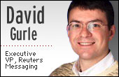 他作為路透社協(xié)作服務部負責人、微軟前高層領(lǐng)導正在試圖將路透消息服務變?yōu)楹蛯κ指偁幍脑囼瀼S。自從2003年4月份加盟路透以來,Gurle已經(jīng)敲定了和美國在線即時消息器