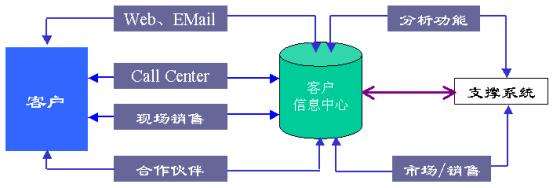 CRM系統(tǒng)的實施與企業(yè)的內部和外部系統(tǒng)緊密相關。其涉及市場、營銷、銷售、實施、客戶服務與支持等一系列循環(huán)過程。一個完整的CRM系統(tǒng)不僅包含與客戶的多方位的多渠道接觸外,還包含市場的定位和分割,營銷策略的制定和客戶細分,銷售機會的把握,銷售的執(zhí)行(任務分派,任務的跟蹤),客戶的管理與分析,客戶的反饋與策略的評判等。從而再重新修正市場策略。這樣一個循環(huán)過程涉及管理、市場、客戶、產品、數據分析與處理等多學科的知識與技術。
