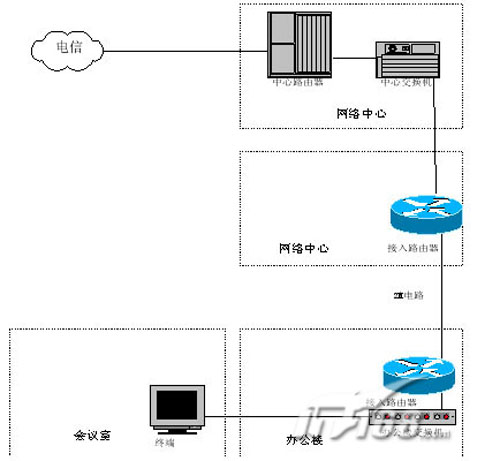 。。2M電路接入是目前電信網(wǎng)絡(luò)常用的一種接入方式。主要是基于目前電信的網(wǎng)絡(luò)環(huán)境,原有的電路交換網(wǎng)絡(luò)十分豐富,大部分地區(qū)都有光纖接入,部分較差地區(qū)也有銅線接入,因此大部分地方可以提供2M電路的接入方式。這樣在兩端分別增加一個(gè)接入路由器,根據(jù)電路提供的接口(如E1、V.35等),選擇不同的端口,可以分別接入到各地的局域網(wǎng)內(nèi),實(shí)現(xiàn)視頻會(huì)議的接入。路由器類型可選性較多,此類路由器屬于低端邊緣路由器,如CISCO、BINTEC、華為等廠家均有相應(yīng)的產(chǎn)品系列。